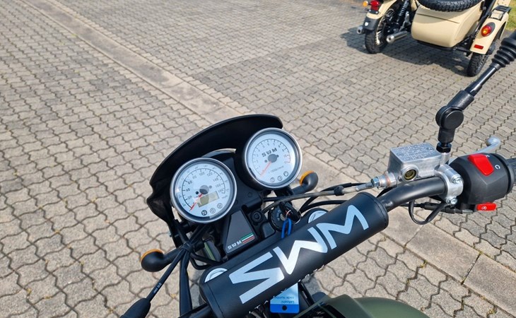 Das Ergebnis ist ein Scrambler mit einer sehr klassischen, bekannten aber auch sehr schönen Silhouette. Die Proportionen stimmen mit den Speichenfelgen dem schönen 650 ccm 1 Zylinder Motor überein. Auch das passende Fahrgefühl für solch ein Bike ist hervorragend. Der Scrambler von SWM ist in Preis/Leistung unerreichbar und mit den angegebenen Daten wird die SWM 500 ein Erfolg werden!